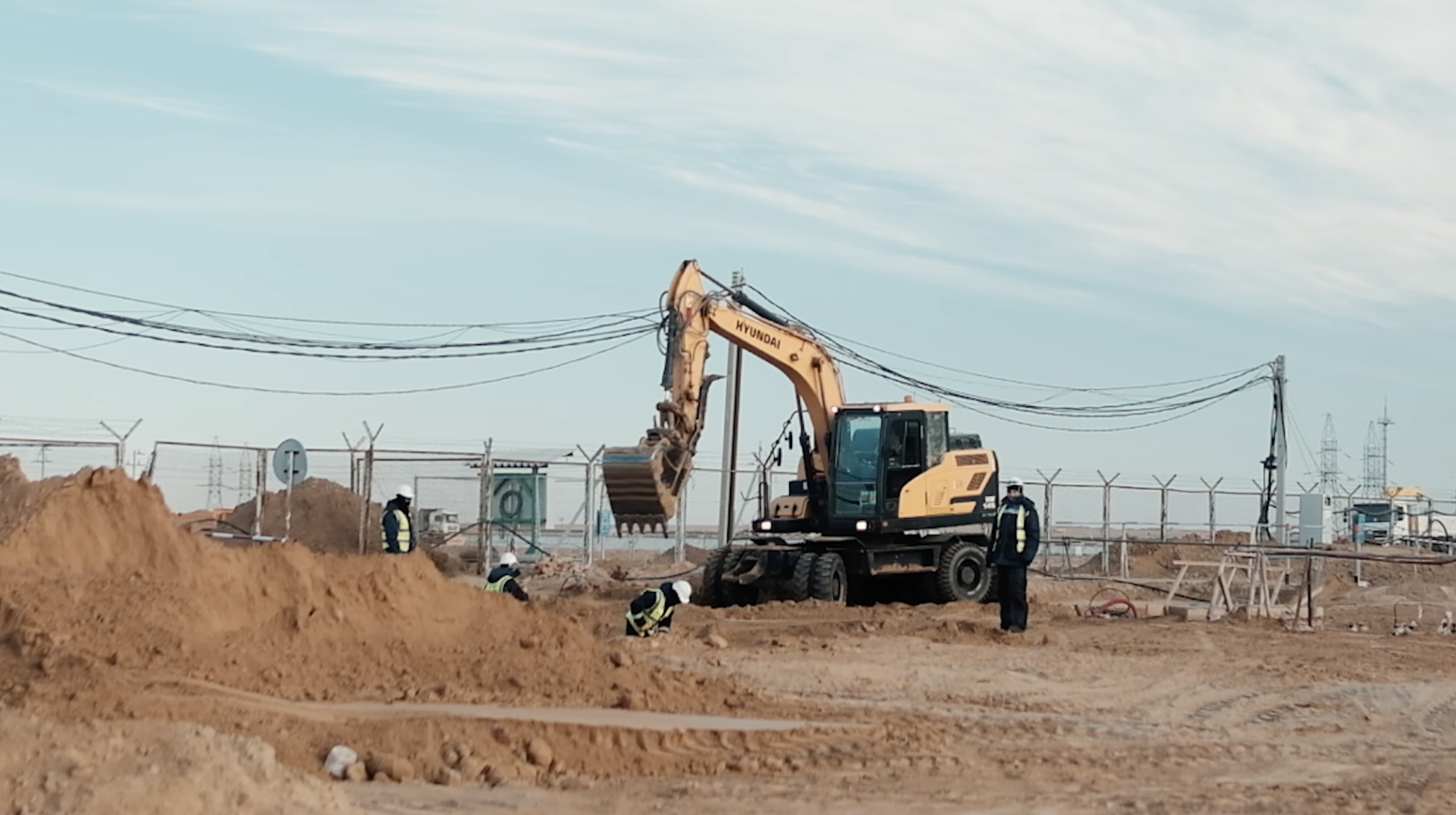 Вахта қалашығы аумағында кабель желілерін жүргізу, электр жабдықтарын монтаждау, траншеялар қазу, құдықтар қазу және кәріз ПЭ-түтіктерін монтаждау жұмыстары жүргізілуде;